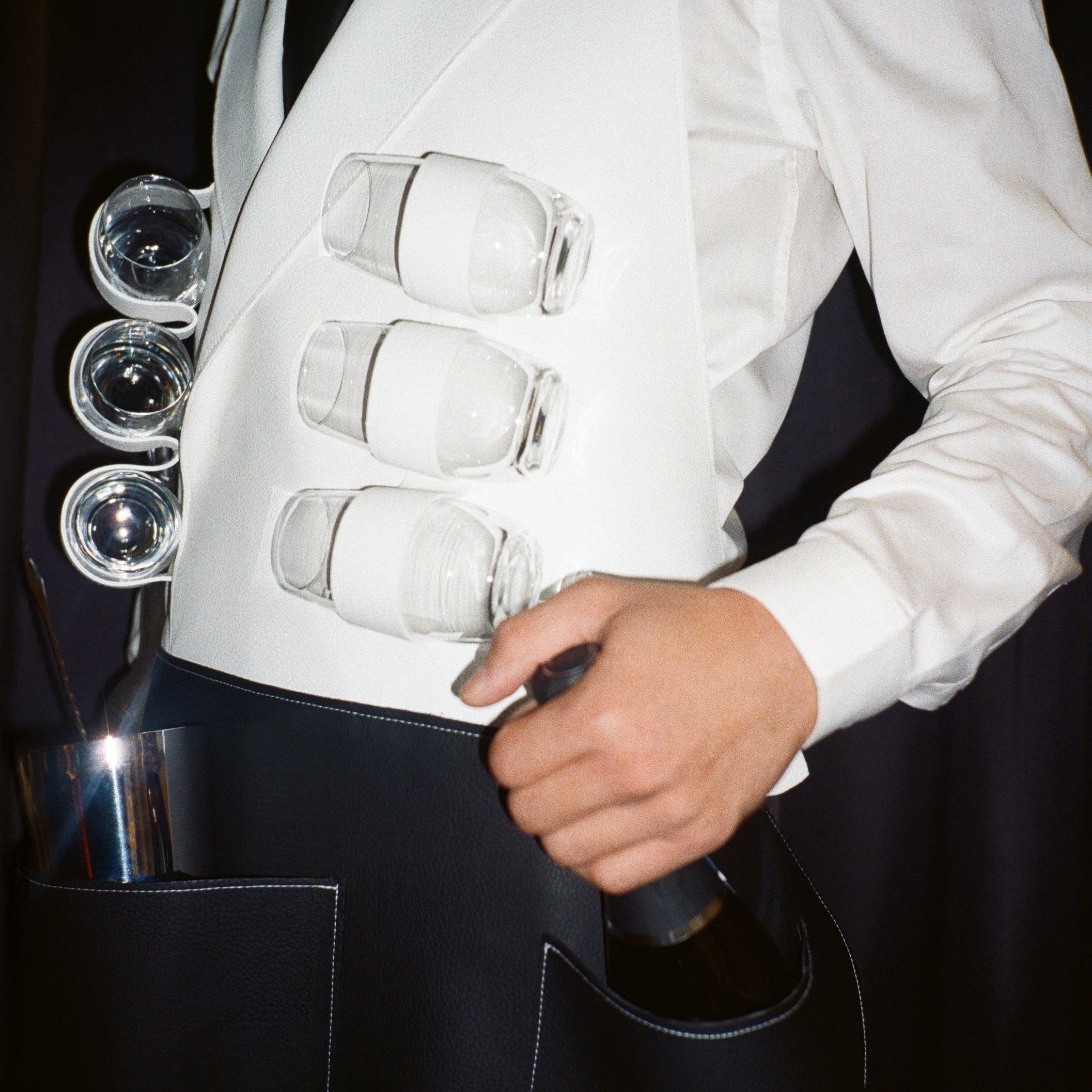 Harry’s Bar in Venedig und ein geteilter Bellini ist Hape's Idee. Wir dürften sie unterstützen in der Herstellung der Lederschürzen für ihre poetische Inszenierung.